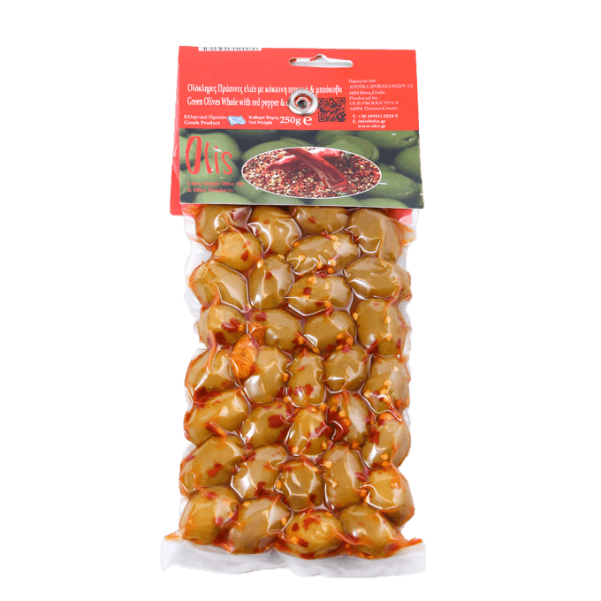 Acest mix OLIS aduce împreună două dintre cele mai îndrăgite soiuri de măsline grecești – verzi Halkidiki și negre Kalamata – marinate într-un dressing mediteranean cu ardei roșu și fulgi de chilli. Rezultatul este o combinație echilibrată între gustul intens al măslinelor și aroma picantă a condimentelor.